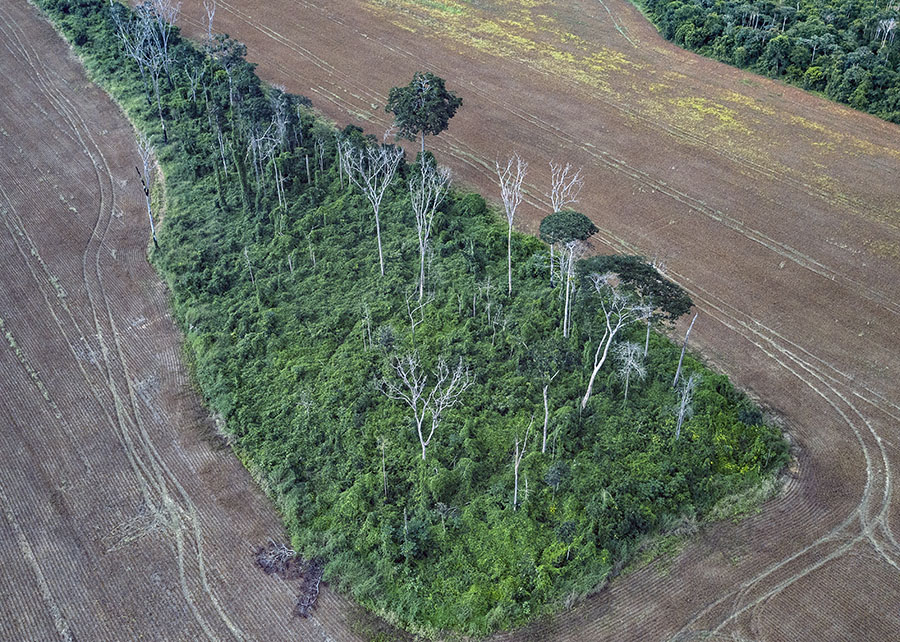 | Desmatamento e degradação O nome Capoeira é uma referência à vegetação que cresce em uma área que foi anteriormente desmatada, chamada de vegetação secundária. A Amazônia já perdeu 18% (846.000 km²), de acordo com o Instituto de Pesquisas Espaciais (Inpe). Essa área equivale a quase a totalidade do estado de Mato Grosso.Além do desmatamento, a degradação também é uma ameaça às funções vitais da floresta e vetor das mudanças climáticas, de acordo com os cientistas do Centro. Uma área de pelo menos 370 mil km² da Floresta Amazônica (um pouco maior que a área total da Alemanha, por exemplo) já foi degradada por incêndios florestais, extração madeireira e fragmentação florestal (efeito de borda causado por atividades agropecuárias – foto à direita). Esses distúrbios geram emissões massivas de gases de efeito estufa, perda de biodiversidade, alteração no regime de chuvas e aumento de doenças e conflitos socioambientais. Foto: Marizilda Crupe (floresta fragmentada) |