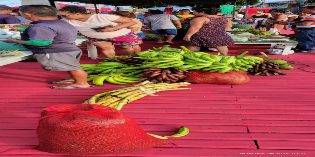 De 7h até o último cliente, na Praça da Igreja Nossa Senhora da Conceição, pelo menos 12 assentados da reforma agrária atendidos pela Emater em comunidades ribeirinhas comercializarão produtos como cupuaçu nativo, milho verde cru e biojoia de semente de açaí.