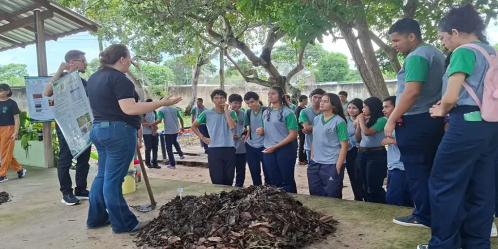 “Durante a ação, os estudantes dos 2º e 3º anos participaram das atividades educativas desenvolvidas, conhecendo na prática o caminho dos resíduos orgânicos: a separação correta, as etapas do processo de compostagem, o manejo das leiras e a transformação desses resíduos em adubo orgânico, mostrando como aquilo que muitas vezes é visto como lixo pode retornar ao solo como recurso valioso”, explica.