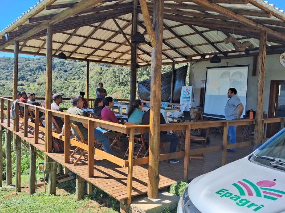 Diego Adilio da Silva, extensionista da Epagri em Treze de Maio, explica a metodologia aplicada. Primeiro a Epagri capacitou seus profissionais, garantindo alinhamento conceitual e segurança técnica. Na segunda etapa, esses técnicos  passaram a replicar os conteúdos junto aos produtores rurais. “Essa abordagem ampliou o alcance e permitiu que os agricultores recebessem orientações qualificadas sobre implantação, manejo e aprimoramento da qualidade dos cafés especiais”, argumenta o extensionista.