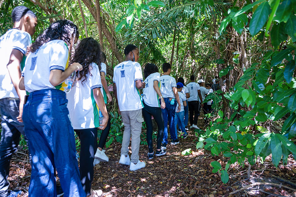Na trilha por dentro da Reserva do Particular do Patrimônio Natural (RPPN) do Caju – um berço de biodiversidade da Mata Atlântica com cerca de 700 hectares – as turmas viram de perto uma grande variedade de espécies vegetais e animais nativas e achados arqueológicos de tribos originárias Tupinambá, além de interagir com pesquisadores e equipes de campo, que apresentaram cada detalhe da reserva, tiraram dúvidas dos estudantes e professores.