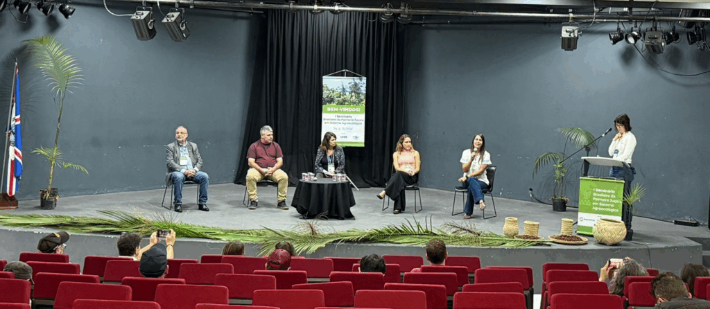 Com o objetivo de discutir o estado da arte desta importante espécie da Mata Atlântica e articular ciência, políticas públicas e práticas locais, foi realizado, em Matinhos (PR), o I Seminário Brasileiro da Palmeira Juçara em Sistema Agroecológico. O evento aconteceu entre 14 e 16 de maio de 2025 e reuniu especialistas, agricultores, gestores públicos e lideranças comunitárias em torno de um objetivo comum: transformar a Juçara (Euterpe edulis) em um símbolo de equilíbrio entre conservação ambiental, geração de renda e justiça social. O evento, pioneiro em escala nacional, foi transmitido ao vivo pelo canal da Embrapa no YouTube, e destacou a urgência de políticas públicas integradas para proteger a espécie – ameaçada pelo extrativismo predatório do palmito, mas, sobretudo, pela drástica redução de suas áreas de ocorrência natural – enquanto fortalece cadeias produtivas sustentáveis baseadas no uso do fruto.