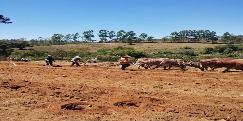 Segundo Marco Aurélio, o sistema foi implantado de uma forma particular. “Para fazermos os sulcos, utilizamos arado de aiveca puxado por boi. Fizemos a marcação dos sulcos de plantio em nível, calagem, fosfatagem e adubação orgânica. Assim, a propriedade será uma unidade demonstrativa de plantação de banana agroecológica consorciada com o plantio de milho, feijão e abóbora”.
