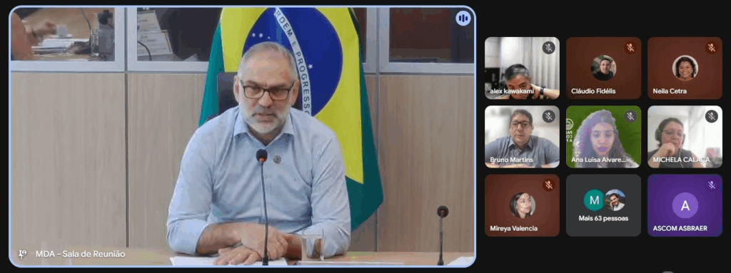 A fala ocorreu durante a oficina virtual promovida pelo Ministério do Desenvolvimento Agrário e Agricultura Familiar (MDA), que reuniu representantes de instituições, entidades e especialistas para discutir a governança do sistema. A diretora executiva da Asbraer, Mariana Matias, também participou das discussões.